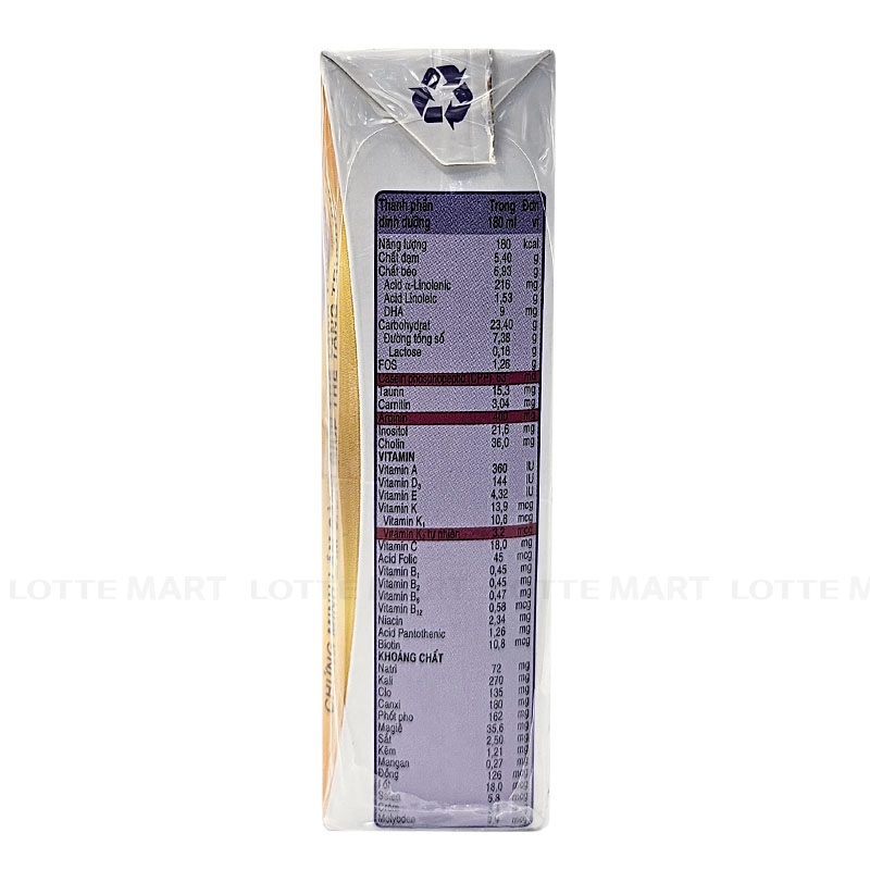 - Nước, Maltodextrin bắp, đường Sucrose, đạm sữa cô đặc, dầu hoa rum giàu Oleic, dầu đậu nành, khoáng chất, đạm Whey cô đặc, MCT, đạm đậu nành tinh chế, Vitamin...