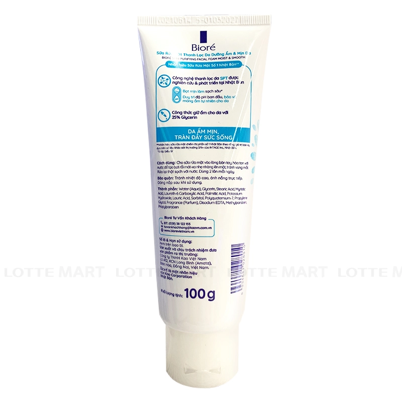 Sữa Rửa Mặt Biore Sáng Mịn Dưỡng Ẩm Tuýp 100g lấy sạch bụi bẩn, bã nhờn mà không làm mất đi độ ẩm tự nhiên của da. Bọt cải tiến dạng kem cực mềm mịn nhẹ nhàng chăm sóc da. Sữa rửa mặt Bioré giúp sạch da, tự tin tỏa sáng. Sữa rửa mặt được chiết xuất từ các thành phần an toàn và lành tính cho da, có nguồn gốc xuất xứ rõ ràng.