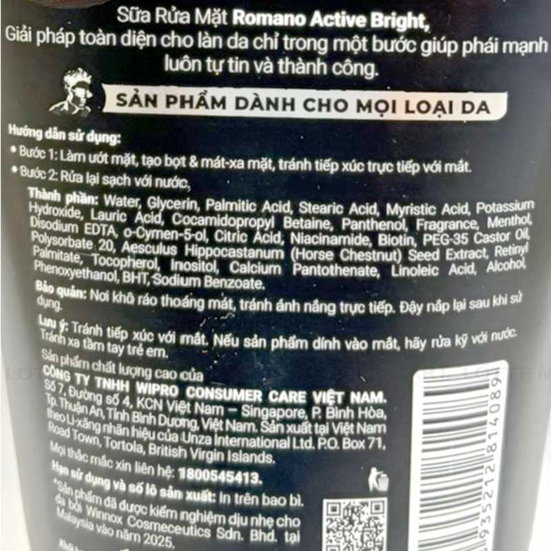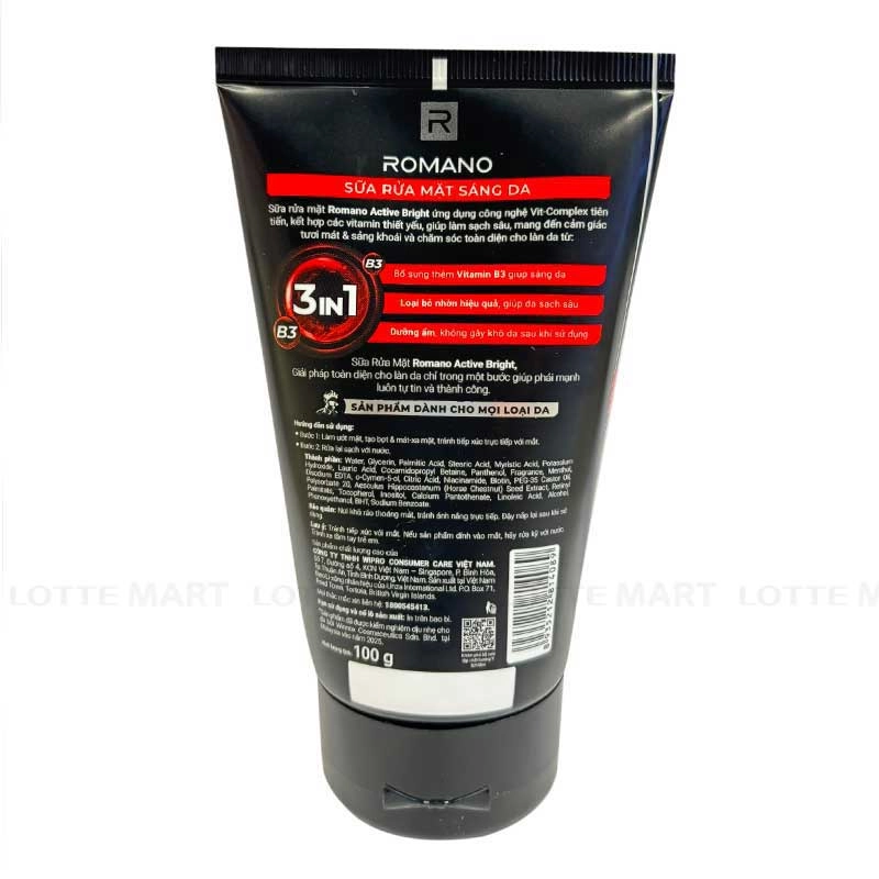 Sữa Rửa Mặt Romano Sáng Da với công nghệ Vit-Complex tiên tiến kết hợp các vitamin thiết yếu, giúp làm sạch sâu bụi bẩn và bã nhờn, mang lại cảm giác tươi mát, sảng khoái và chăm sóc da toàn diện.