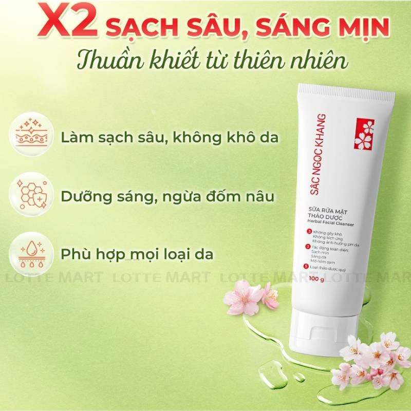 - Sữa Rửa Mặt Thảo Dược Sắc Ngọc Khang đặc biệt với công nghệ làm sạch kết hợp dưỡng trắng nhờ phức hợp SNK White độc quyền từ Nhật Bản chứa 5 loại thảo dược quý: Hoa Anh Đào, Nam Việt Quất, Vải, Hắc Mai Biển, Cam Unshiu.
