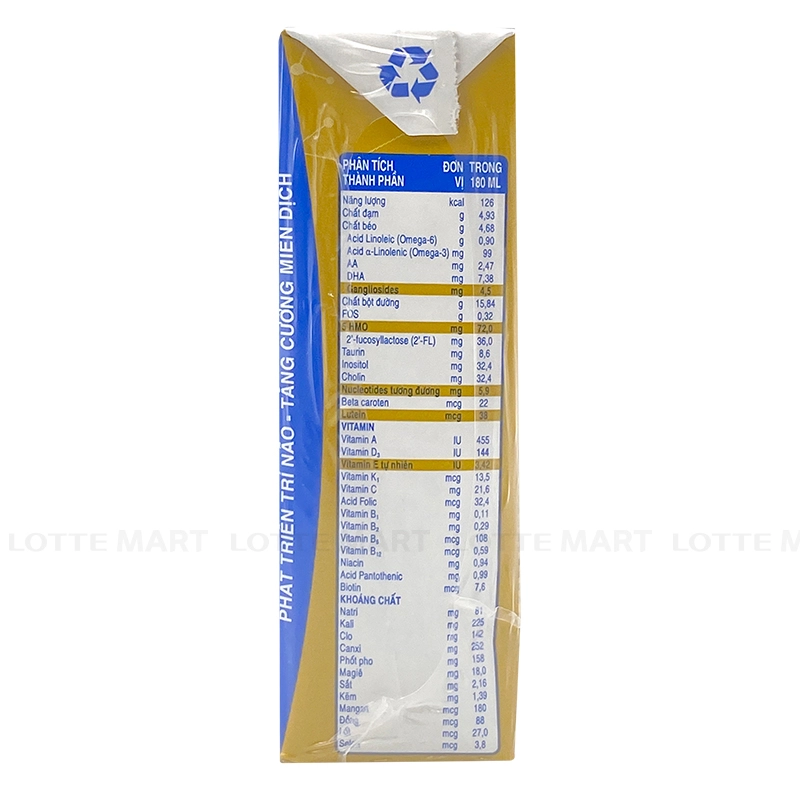 Thành phần: Nước, sữa toàn phần, sucrose, sữa tách kem, mật bắp, lactose,hỗn hợp inulin và fructo-oligosaccharid (FOS), KHOÁNG CHẤT (canxi carbonat, kali citrat, sắt sulfat, kẽm sulfat, mangan sulfat, đồng sulfat, natri selenat, kali iodid), cellulose gel. VITAMIN (natri ascorbat, acid ascorbic, cholin bitartrat, vitamin E acetat, niacinamid, vitamin D3, vitamin A acetat, thiamin hydroclorid,pyridoxin hydroclorid, canxi pantothenat, riboflavin, acid folic, vitamin K1, dbiotin…