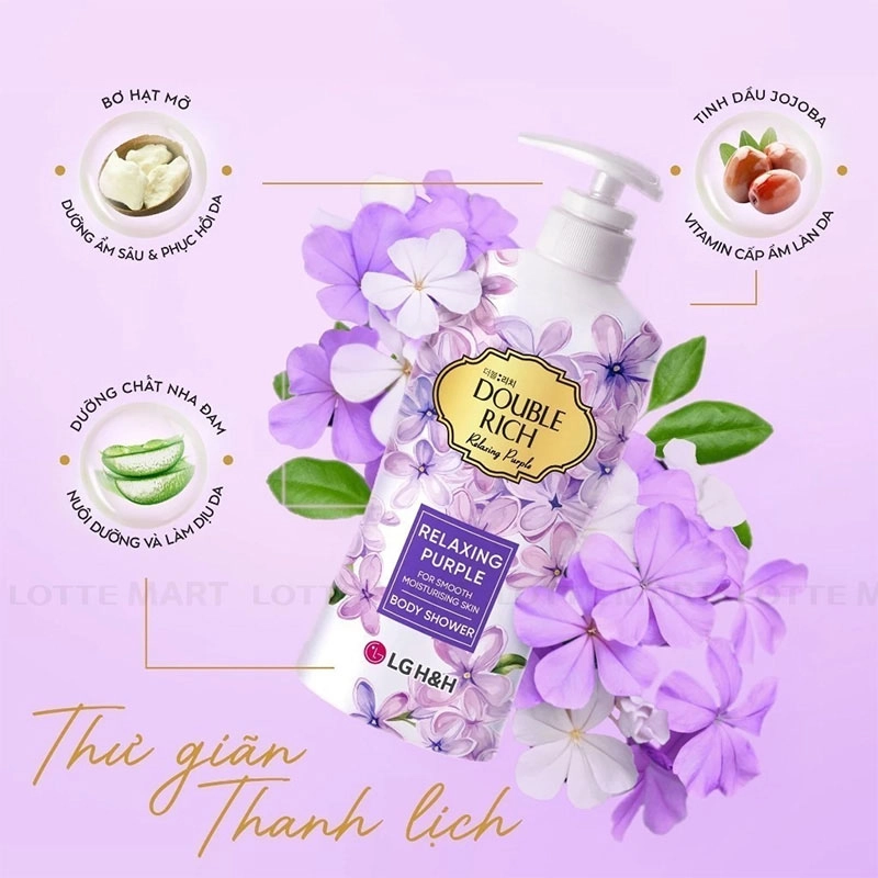 Sữa Tắm Double Rich Relax Purple là sự lựa chọn lý tưởng dành cho làn da cần được nuông chiều và chăm sóc mỗi ngày.
