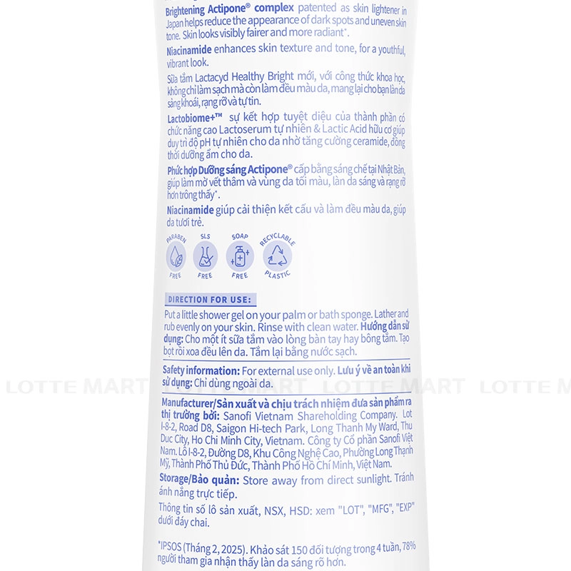 Sữa Tắm Lactacyd Healthy Bright Hỗ Trợ Đều Màu Da hỗ trợ củng cố hàng rào bảo vệ tự nhiên, giúp da không chỉ sáng mà còn khỏe mạnh.
