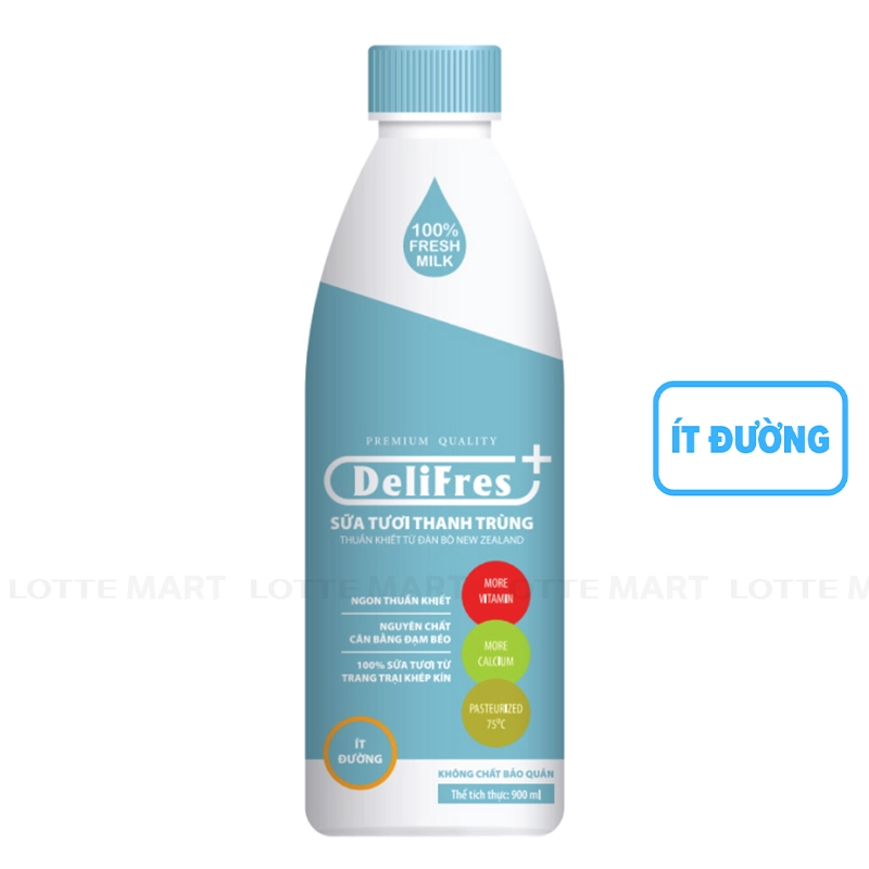 Sữa Tươi Thanh Trùng DeliFres+ Ít Đường Chai 900ml
