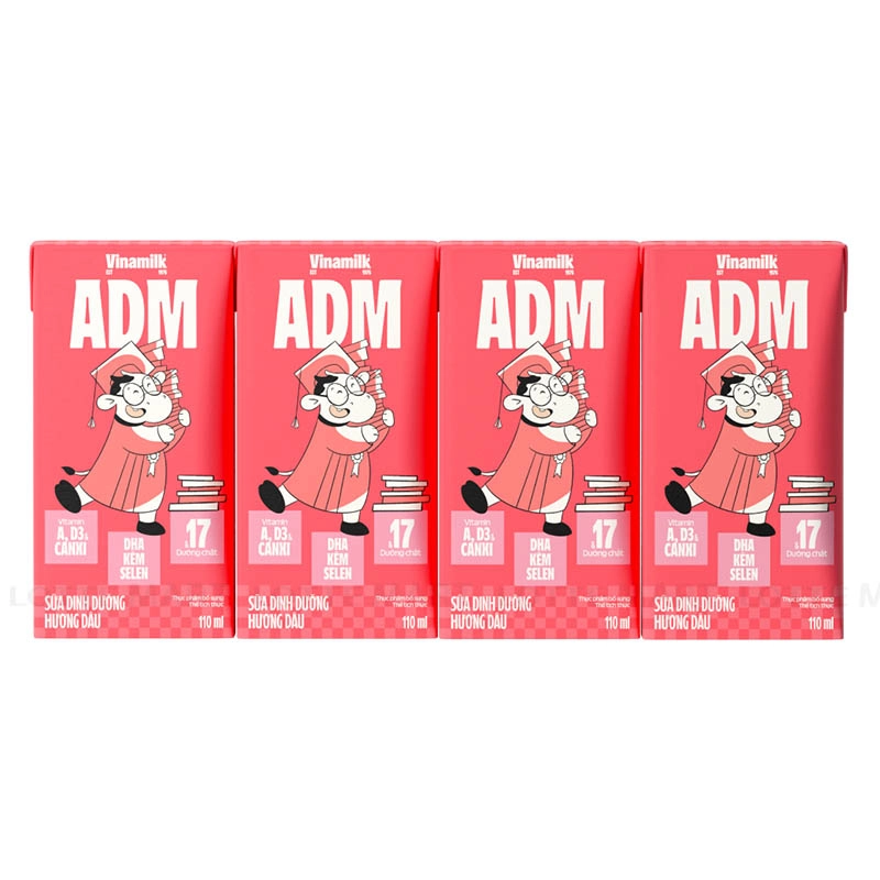 Sữa Dinh Dưỡng Vinamilk ADM Hương Dâu Lốc 4 Hộp 110ML