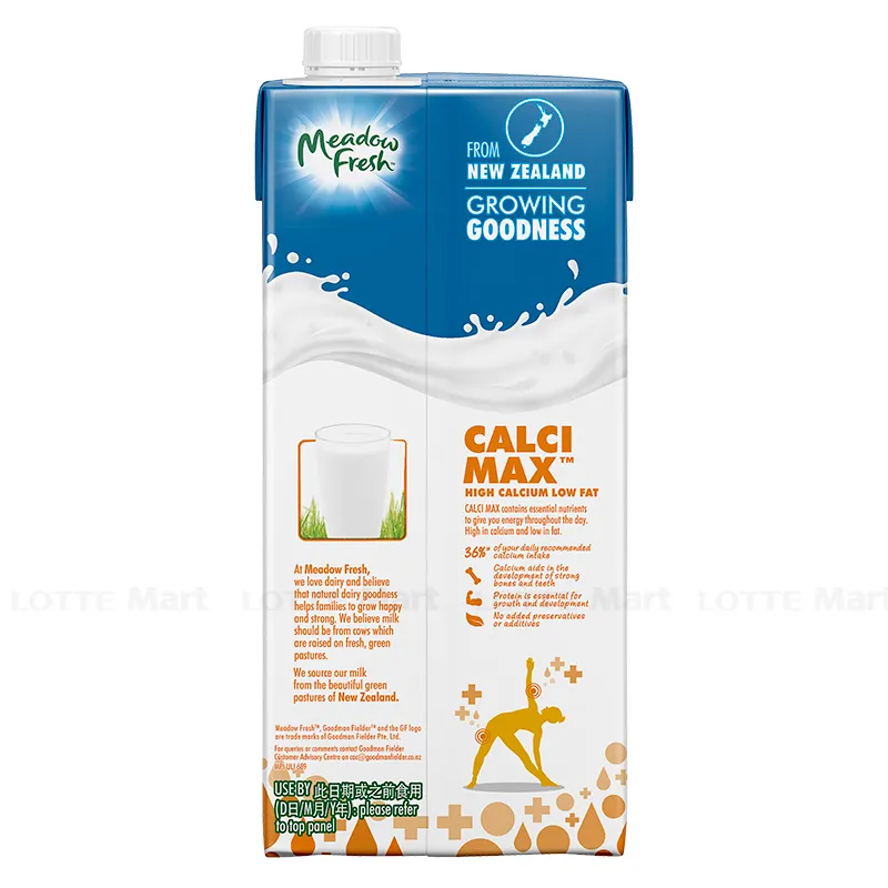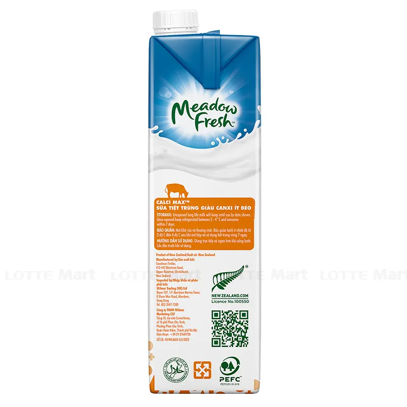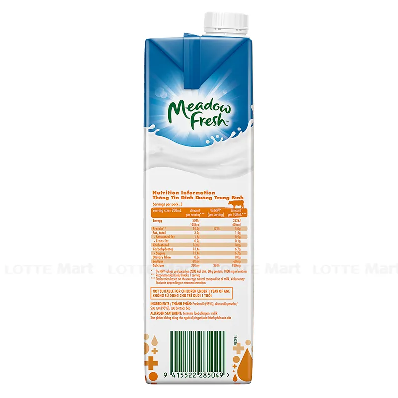 Sữa Tươi Tiệt Trùng Canxi Meadow Fresh Hộp 1L sử dụng nguồn sữa bò tươi chọn lọc từ các nông trại bò sữa lớn tại New Zealand. Với thành phần nguyên liệu là dòng sữa tươi sạch, ngọt lành và tinh túy tạo nên sản phẩm sữa tươi tiệt trùng nguyên kem bổ dưỡng, chất lượng cao.