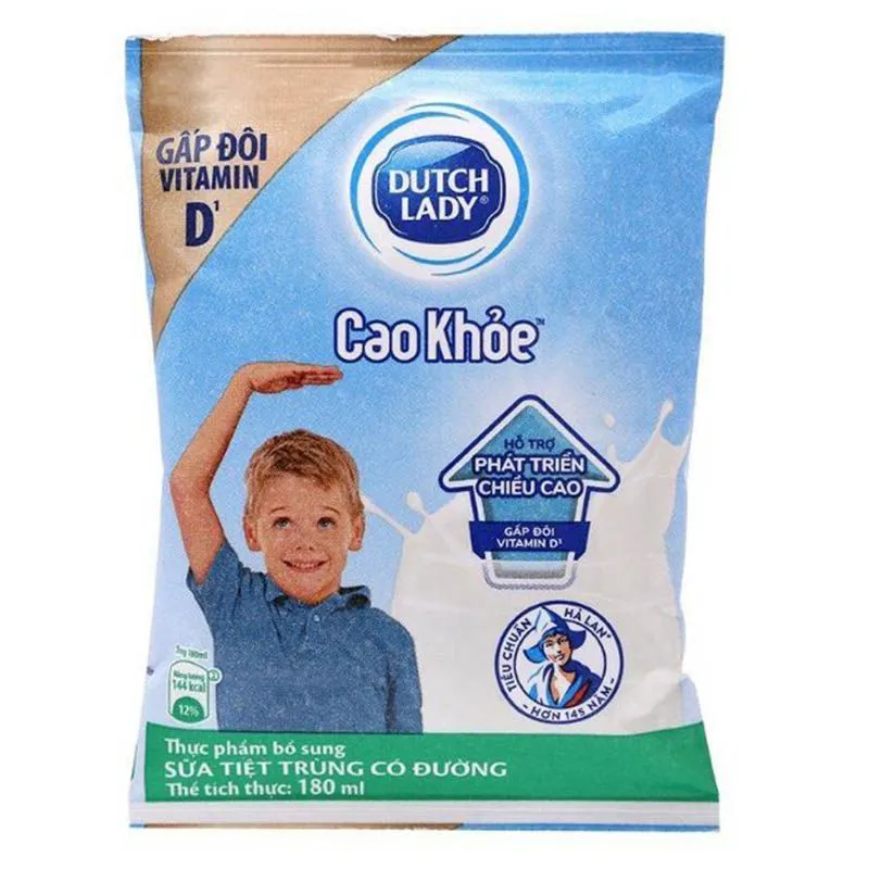 Sữa Dutch Lady bổ sung gấp đôi vitamin D giúp đẩy mạnh hấp thu canxi để trẻ phát triển chiều cao và khoẻ mạnh. Sữa có vị ngọt vừa, thơm ngon, dễ uống và hợp khẩu vị với nhiều người. Sữa tiệt trùng có đường Dutch Lady Cao khoẻ bịch 180ml bịch tiện dùng.