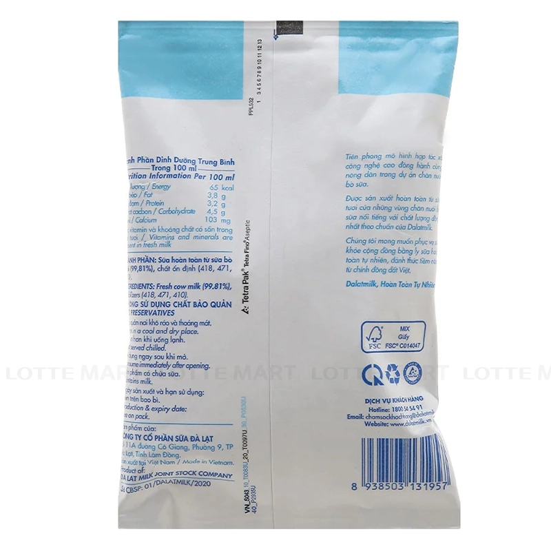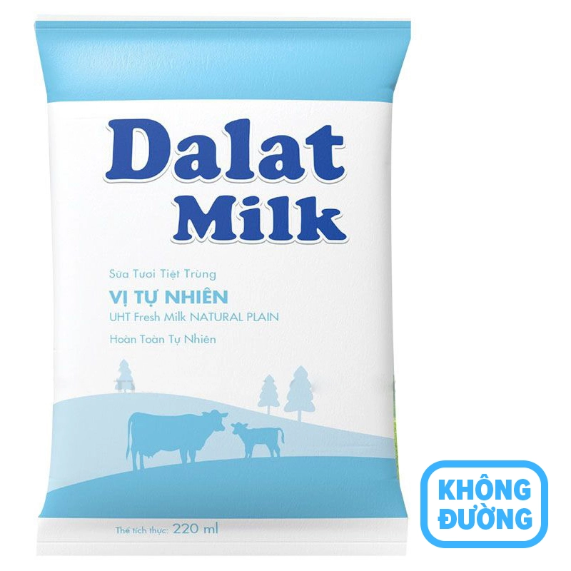 Sữa Tươi Tiệt Trùng Dalat Milk Vị Tự Nhiên Bịch 220ml