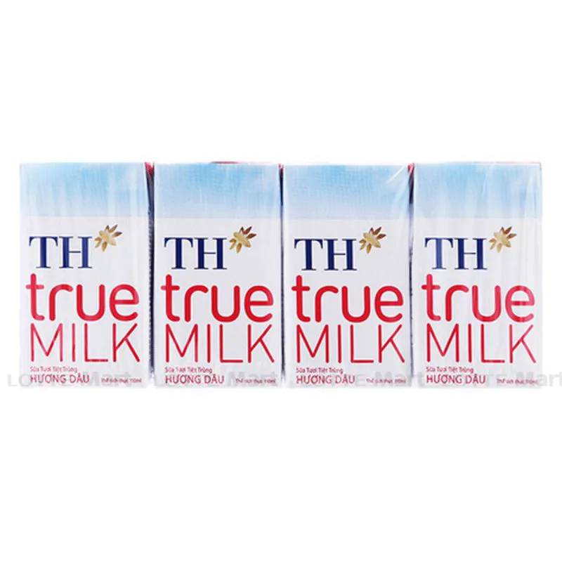 Sữa Tươi Tiệt Trùng TH True Milk Hương Dâu Lốc 4 Hộp 110ml