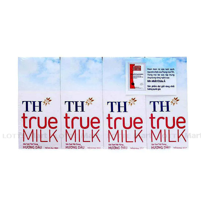 Sữa Tươi Tiệt Trùng TH True Milk Hương Dâu Lốc 4 Hộp 180ml
