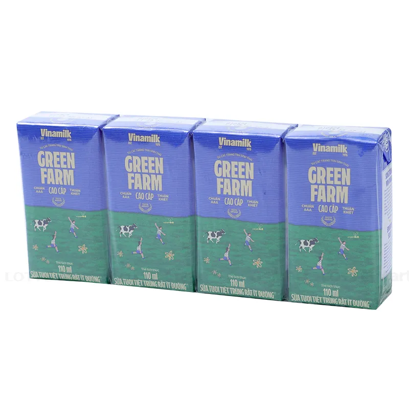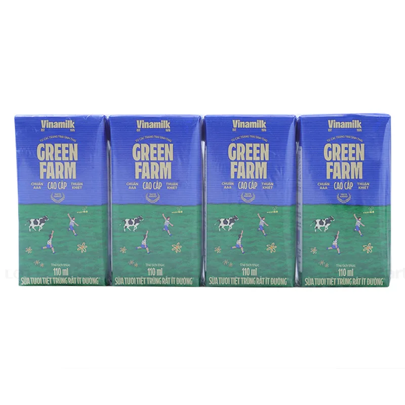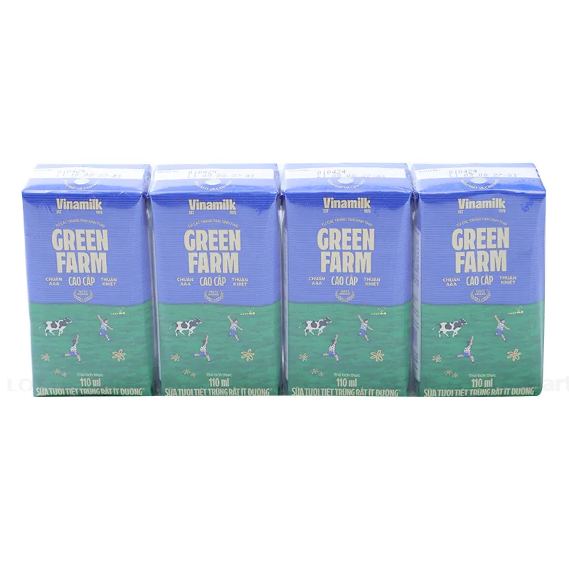 Sữa Tươi Tiệt Trùng Vinamilk Green Farm Ít Đường Lốc 4 Hộp 110ml