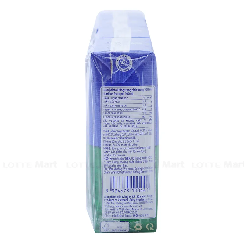 Sữa Tươi Tiệt Trùng Green Farm Ít Đường Vinamilk cao cấp mới với nguồn sữa tươi 100% thuần khiết từ hệ thống trang trại sinh thái Vinamilk Green Farm thanh nhẹ thuần khiết. Đàn bò sữa thuần chủng được nhập khẩu từ Mỹ, Úc và New Zealand.