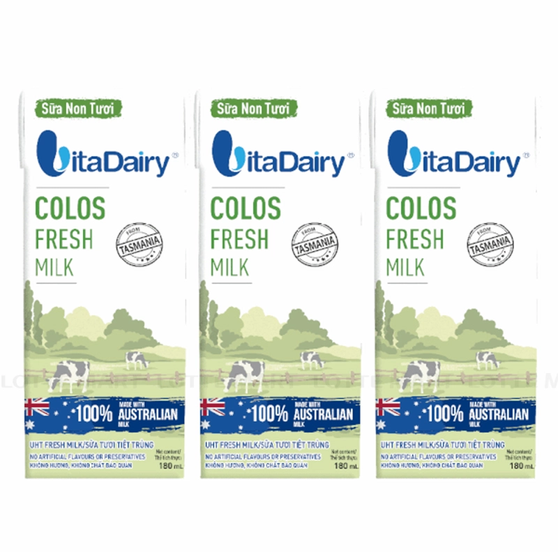 Sữa Tươi Tiệt Trùng VitaDairy Colos Fresh Lốc 3 Hộp 180ml