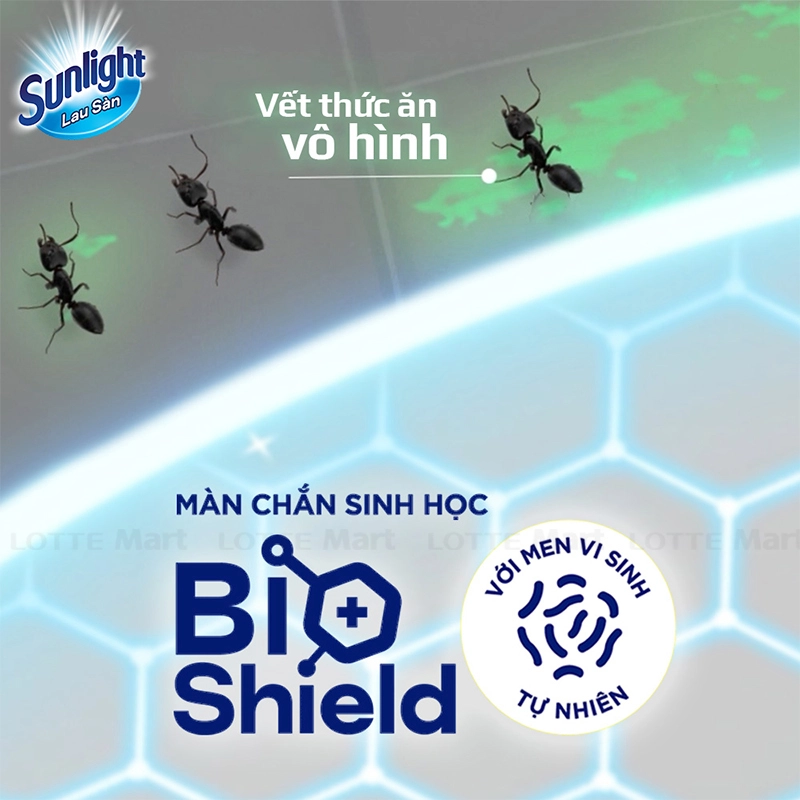- Lần đầu tiên trên thị trường ra mắt Nước Lau Sàn Sunlight BIOSHIELD Chanh Yuzu & Sả Chai 3.6kg, với công nghệ đột phá màn chắn sinh học BioShield kết hợp cùng tinh dầu thảo mộc, không chỉ giúp sàn nhà sạch bóng kin kít, ngát hương thơm mát mà còn ngăn đuổi các loại côn trùng phổ biến như kiến, gián lên đến 24h.