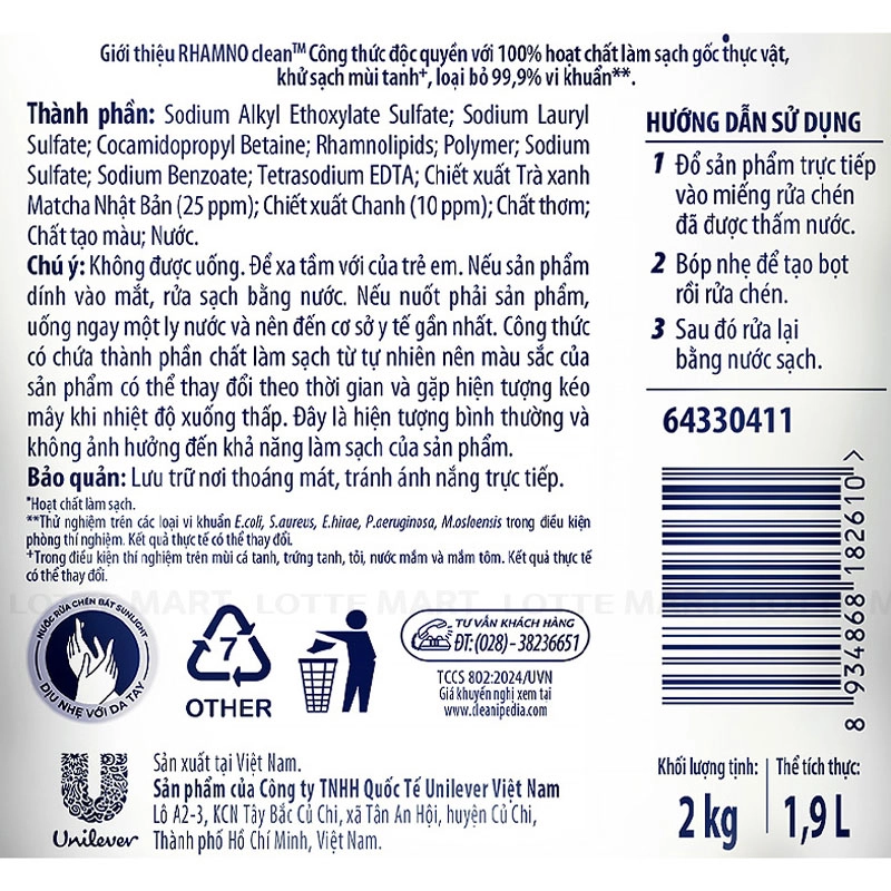 - Nước rửa chén chứa 0% thành phần làm sạch gốc dầu mỏ, 0% phẩm màu và 0% paraben cùng công thức với 99.7% phân hủy sinh học.