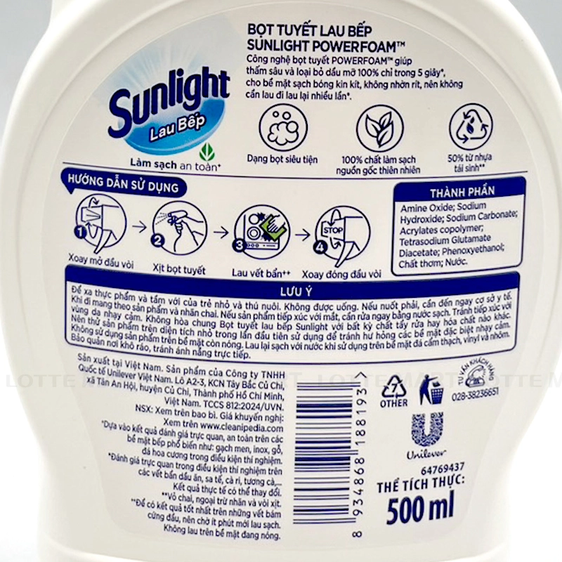 - Không hòa chung Bọt tuyết lau bếp Sunlight với bất kỳ chất tẩy rửa hay hóa chất nào khác. Nên thử sản phẩm trên diện tích nhỏ trong lần đầu tiên sử dụng để tránh hư hỏng các bề mặt đặc biệt nhạy cảm.