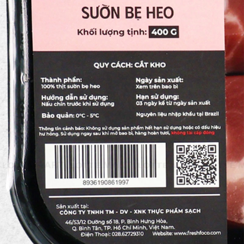 Sườn Bẹ Heo Nhập Khẩu Cắt Cho Món Kho FRESHFOCO 400G