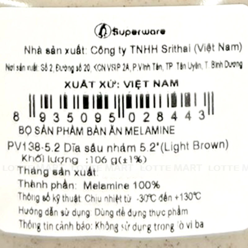 Dĩa Sâu Superware Melamine Màu Nâu Sáng được làm từ chất liệu 100% Melamine, một chất liệu cứng cáp và bền, phù hợp để sử dụng hàng ngày.