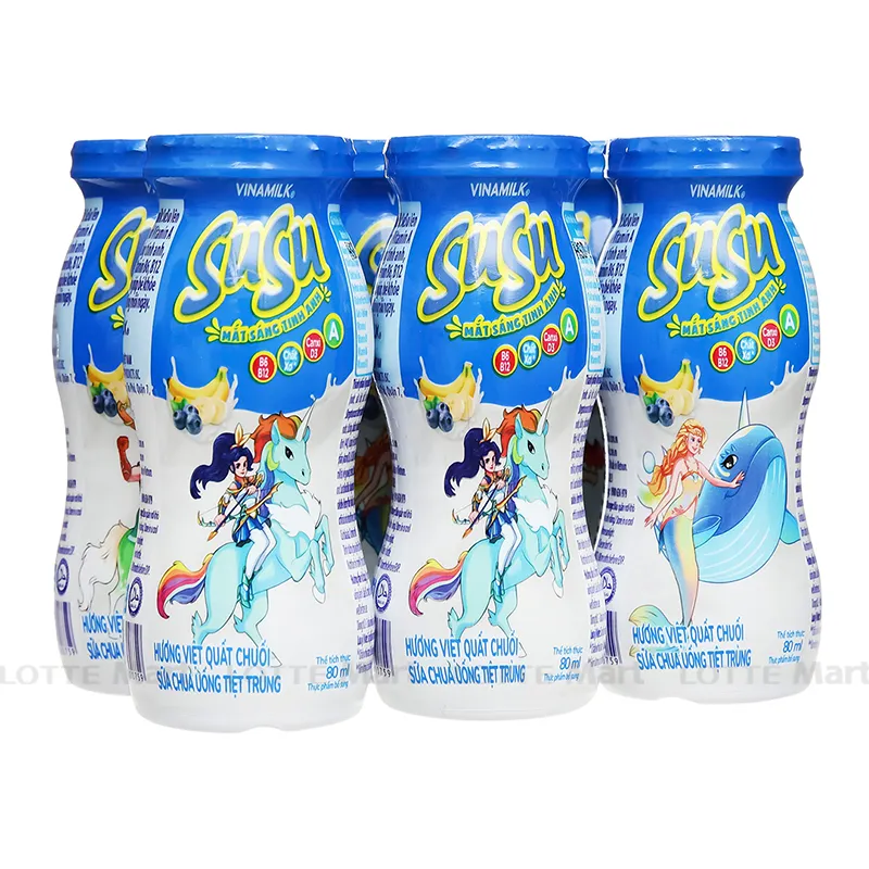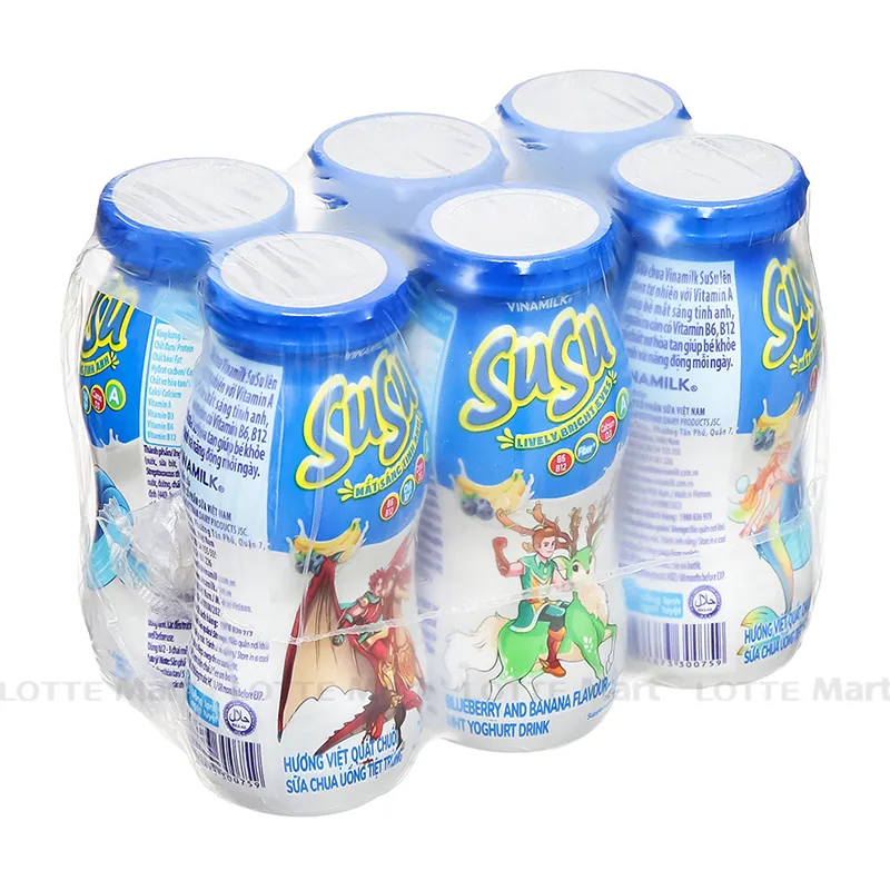 - Sữa Chua Uống Susu Hương Việt Quất Chuối Lốc 6 Chai 80ml lên men tự nhiên với Vitamin A cho đôi mắt sáng tinh anh, Ngoài ra còn có Vitamin B6, B12 và chất xơ hòa tan giúp bé khỏe mạnh và năng động mỗi ngày.