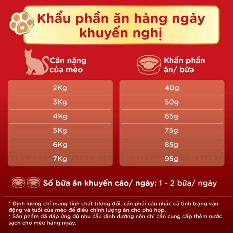 - Cách sử dụng: Sản phẩm đã đáp ứng đủ nhu cầu dinh dưỡng cần thiết nên chỉ cần cho mèo ăn cùng với nước uống như thực phẩm hàng ngày.