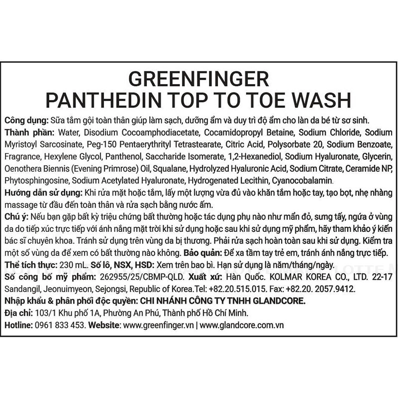 Sữa Tắm Gội Toàn Thân Greenfinger Panthedin Mịn Màng Cho Bé 230ml