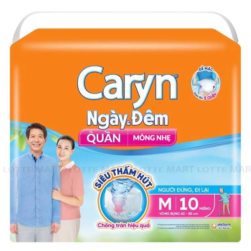 - Tã Quần Người Lớn Caryn Mỏng Nhẹ Ngày và Đêm Size M là giải pháp hoàn hảo cho người gặp phải vấn đề với hệ bài tiết, giúp bản thân luôn giữ sạch sẽ và vệ sinh cá nhân. Với thiết kế mỏng nhẹ, sản phẩm này thích hợp cho cả ban ngày và ban đêm, mang lại cảm giác thoải mái và không để lại vết hằn.