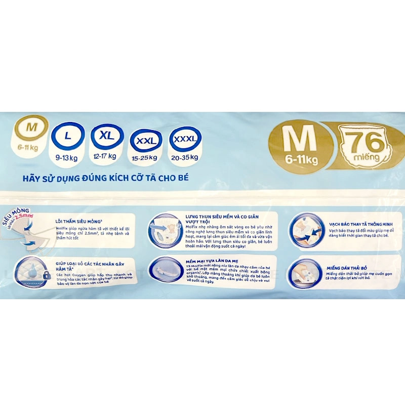 Tã Quần Molfix Oxygen Size M Bịch 76 Miếng (Cho Bé Từ 6-11kg)