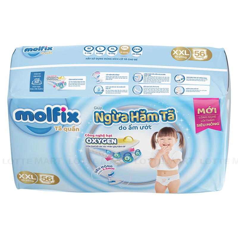 Tã Quần Molfix Oxygen Size XXL Bịch 56 Miếng (Cho Bé 15-25kg)