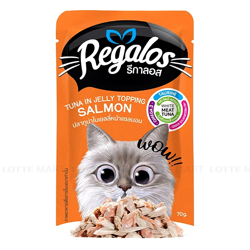 - Pate Cho Mèo Dạng Jelly Regalos Vị Cá Ngừ Topping Cá Hồi 70g với công thức chế biến hiện đại khoa học, đáp ứng đầy đủ nhu cầu dinh dưỡng cho cơ thể mèo cưng.