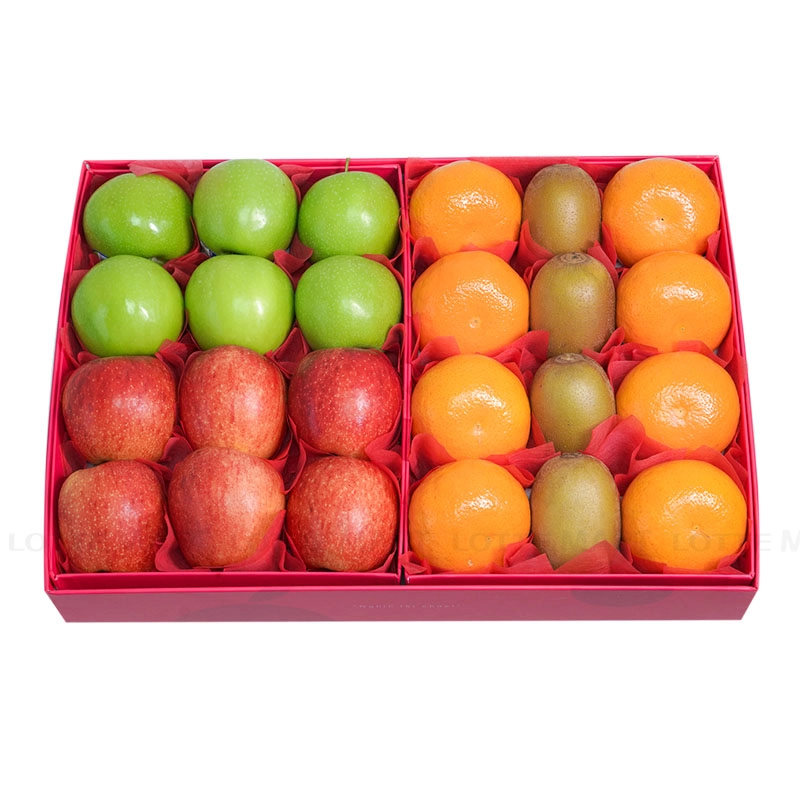 Hộp quà bao gồm 6 Trái Táo Envy Mỹ, 4 Trái Kiwi Pháp, 8 Trái Quýt Vàng và 6 Trái Táo Xanh.