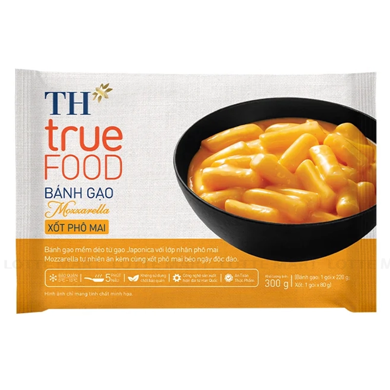 - Bánh gạo được làm từ gạo Japonica chất lượng cao, tạo ra kết cấu mềm dẻo; Thành phần xốt phô mai sử dụng sữa tươi và bơ tự nhiên từ sữa tươi sạch của trang trại TH. Bánh gạo Mozzarella có phần nhân phô mai tươi Mozzarella tự nhiên từ sữa tươi sạch của trang trại TH.