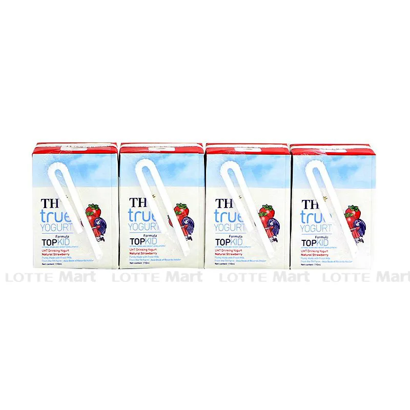 Sữa Chua Uống Tiệt Trùng TH True Yogurt Top Kid Hương Dâu Lốc 4 Hộp 110ML được làm từ sữa bò tươi nguyên chất qua quá trình lựa chọn kỹ càng tại nông trại của TH để lên men và kết hợp với nước ép trái cây, từ đó tạo ra sản phẩm Mang hương vị thơm ngon, lôi cuốn hút vị giác.