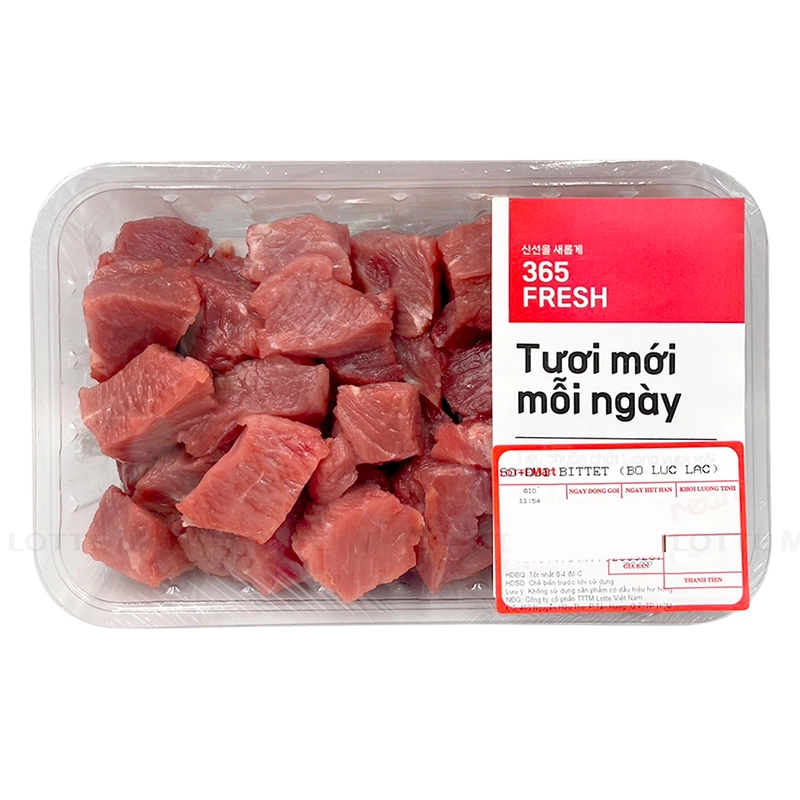 Bò lúc lắc có mùi thơm đặc trưng và không bị hôi. thịt có màu đỏ tươi, mỡ vàng nhạt và gân trắng. Khi dùng tay ấn vào mặt thịt cảm giác được độ đàn hồi, bám dính tự nhiên.