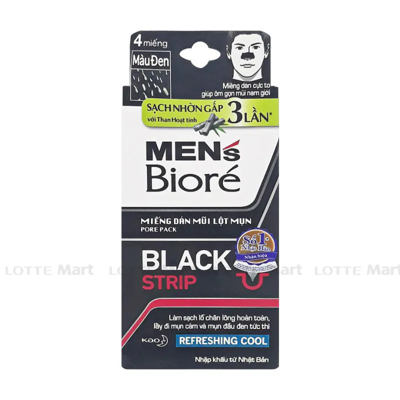 Miếng Dán Mũi Lột Mụn Biore Than Hoạt Tính Cho Nam 4 Miếng