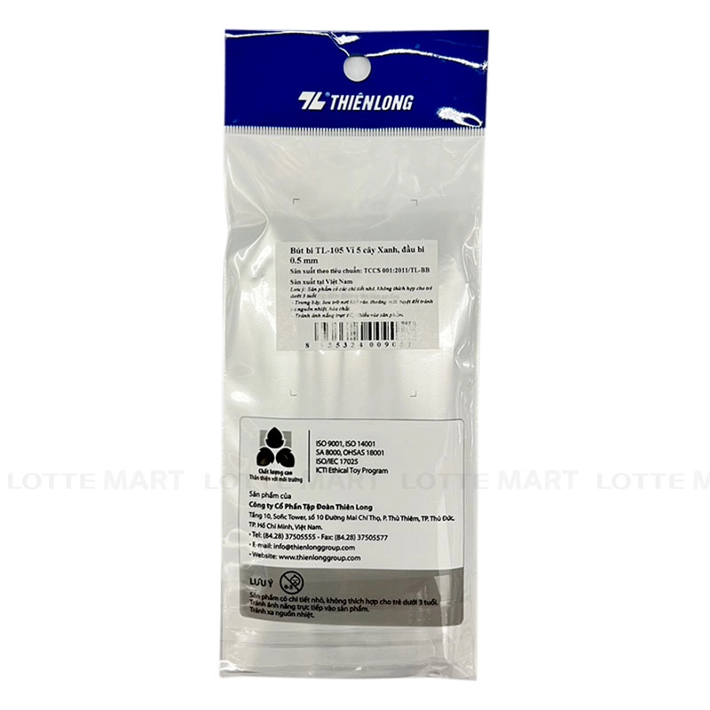 Vỉ 5 Bút Bi Thiên Long Pastel PRO TL-105 Mực Xanh