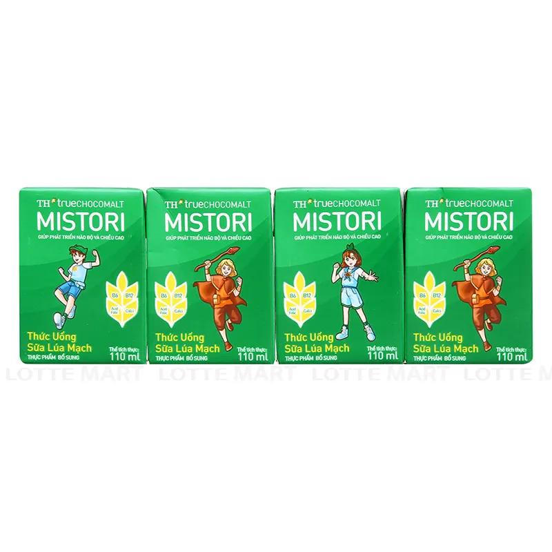- Thức Uống Sữa Lúa Mạch TH True Chocomalt Mistori Lốc 4 Hộp 110ml hương vị cacao lúa mạch thơm ngon giúp phát triển não bộ và chiều cao của trẻ. Sữa lúa mạch cacao TH True Chocomalt Mistori là dòng sản phẩm sữa cacao lúa mạch sử dụng sữa tươi sạch nguyên chất của trang trại TH.