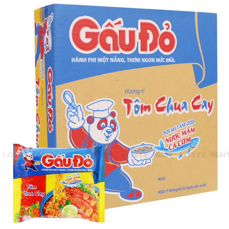 Thùng 30 Gói Mì Gấu Đỏ Tôm Chua Cay Gói 63G/Gói