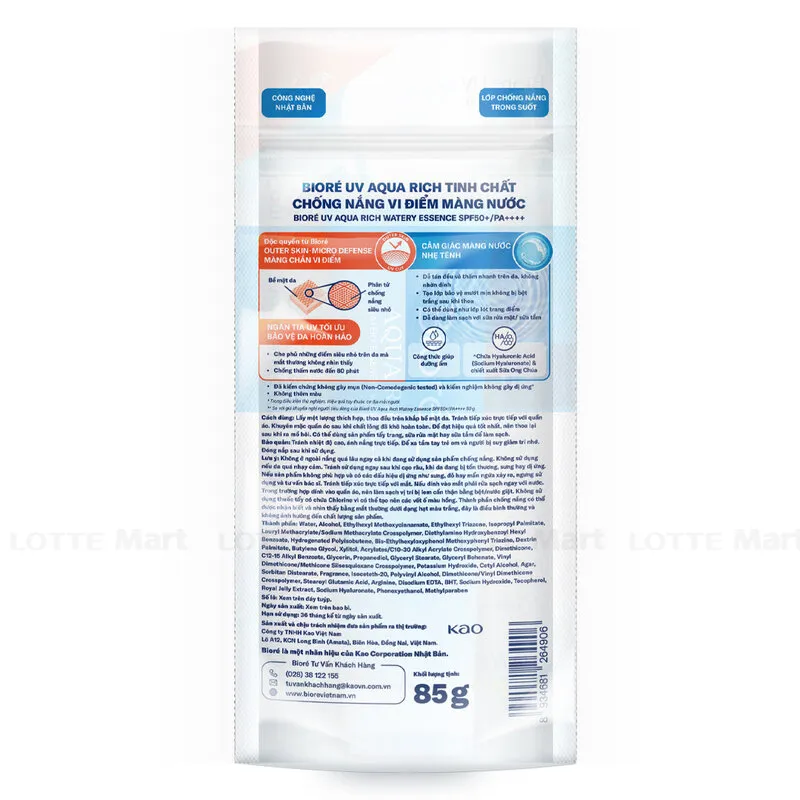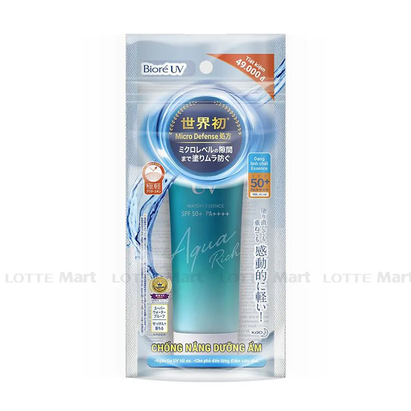 Tinh Chất Chống Nắng Biore Dưỡng Ẩm SPF50+ Tuýp 85G ngăn tia UV tối ưu nhờ phân tử chống nắng siêu nhỏ, bảo vệ da hoàn hảo mà không gây bết dính.