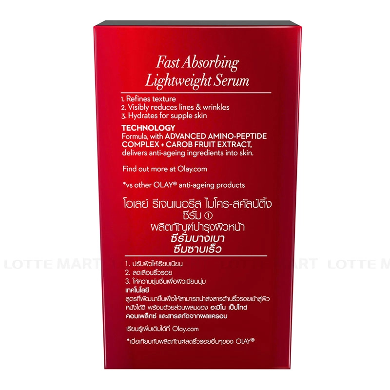 - Serum Olay Regenerist Ngăn Ngừa Lão Hóa là sản phẩm serum được bào chế từ các thành phần chính bao gồm Niacinamide (Vitamin B3), pro-Vitamin B5, Amino peptide, Vitamin E và chiết xuất trà xanh giúp ngăn ngừa lão hóa da và duy trì làn da trẻ đẹp căng mịn.