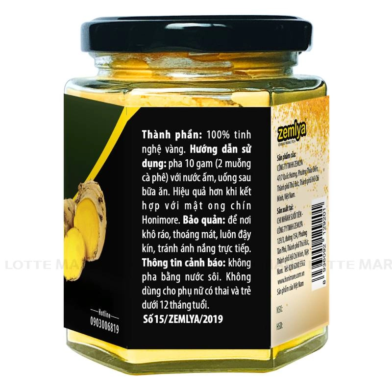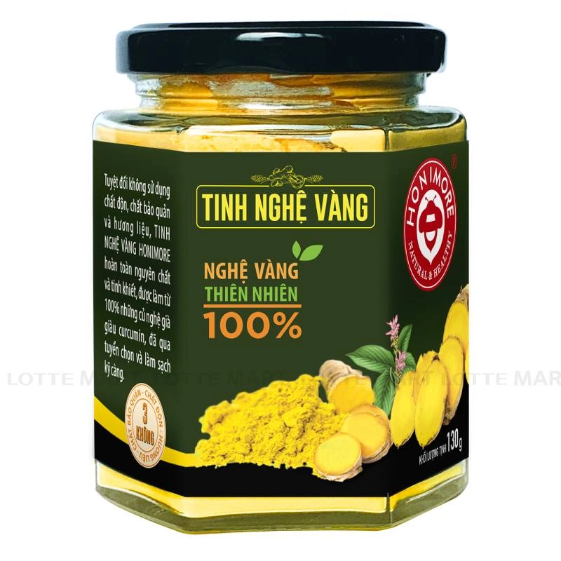 - Tinh Nghệ Vàng Honimore Hũ 130G được làm từ những củ nghệ tẻ, màu vàng sáng, nguyên chất, rất không sử dụng chất bảo quản, chất độn và hương liệu.
