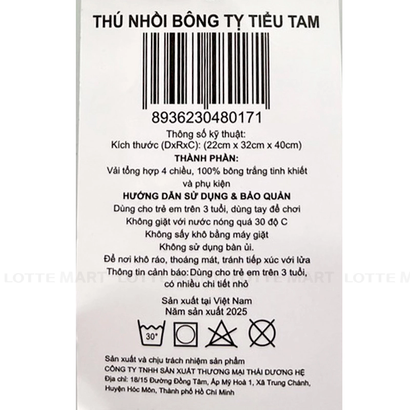 - Sản phẩm được sử dụng chất liệu vải mềm mại cùng lớp bông gòn trắng mịn màng, mang lại cảm giác êm ái và dễ chịu, hoàn hảo cho những cái ôm.