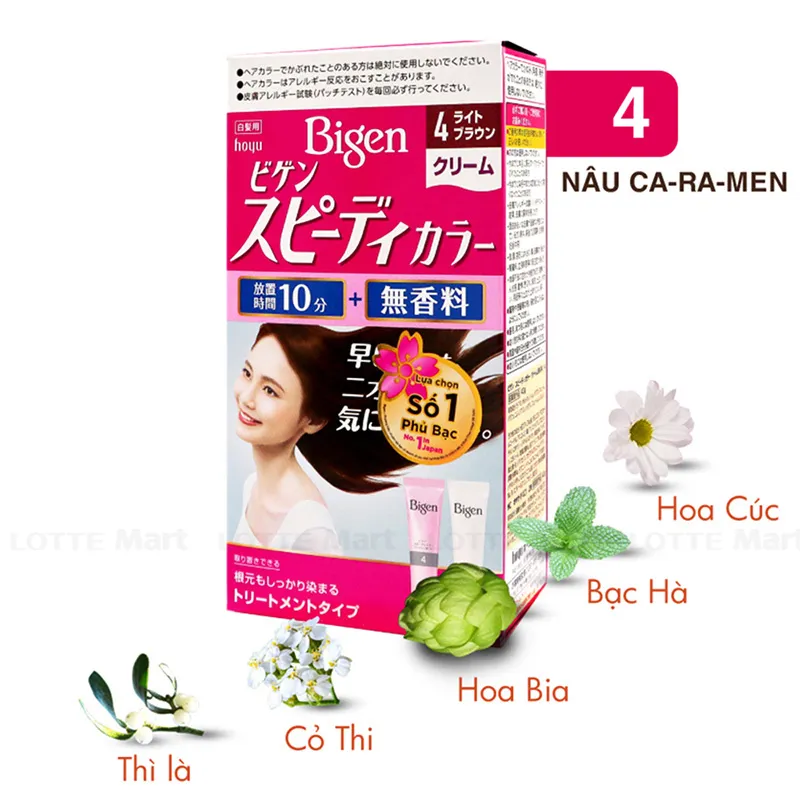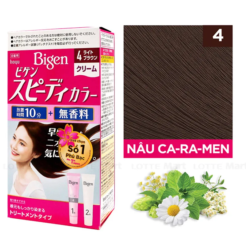 Kem Nhuộm Tóc Bigen Speedy Color Cream #4 Màu Nâu Caramen Hộp 80g