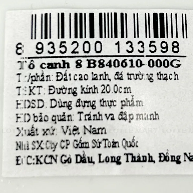 Tô Canh Viền Vàng 8 B840610-000G