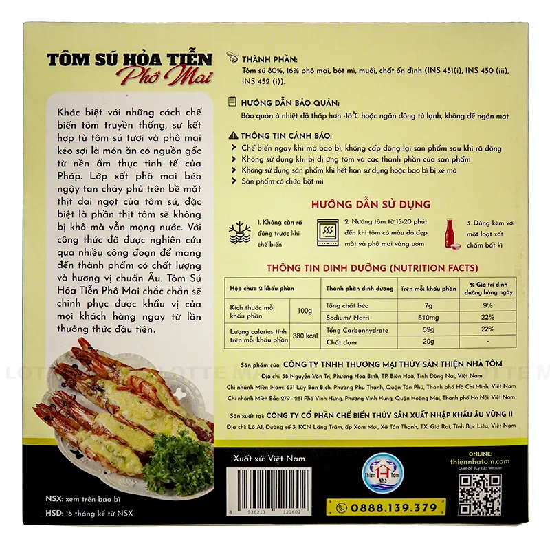 Chế biến ngay sau khi mở bao bì, không được tái cấp đông.