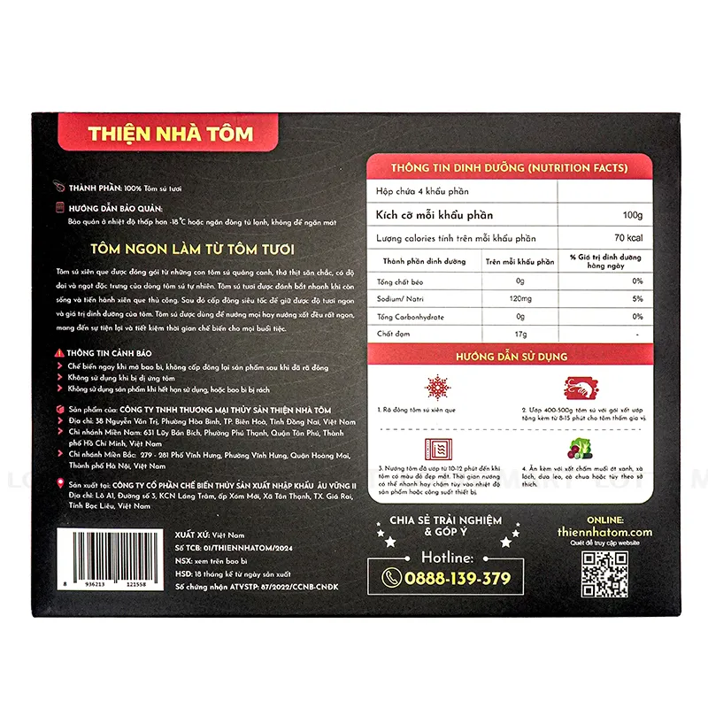 Tôm sú được đánh bắt và chế biến nhanh khi còn sống để đảm bảo độ tươi và xiên que thủ công. Sau đó được cấp đông siêu tốc để giữ nguyên độ tươi và giá trị dinh dưỡng của tôm.