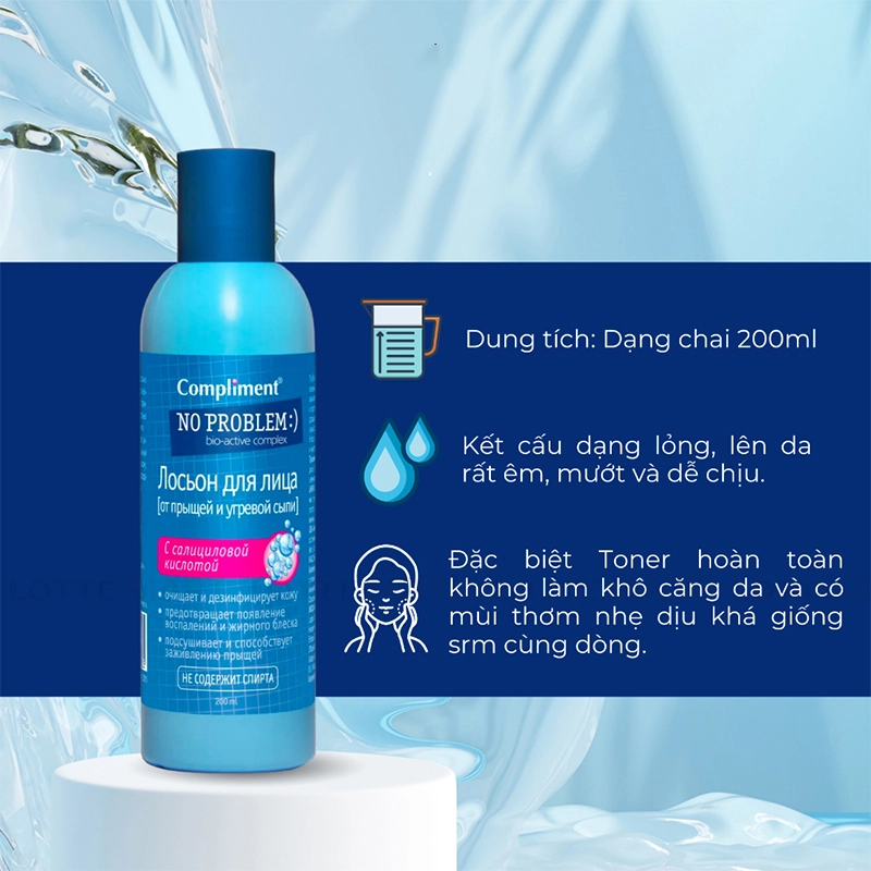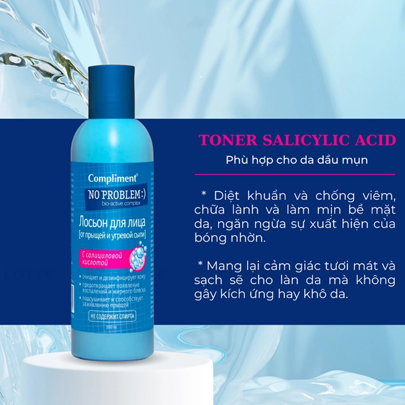 Toner Compliment No Problem Salicylic Acid là sản phẩm thuộc thương hiệu Compliment của Tập đoàn TIMEX - một trong những doanh nghiệp sản xuất mỹ phẩm lớn và nổi tiếng nhất nước Nga được thành lập từ năm 1994.