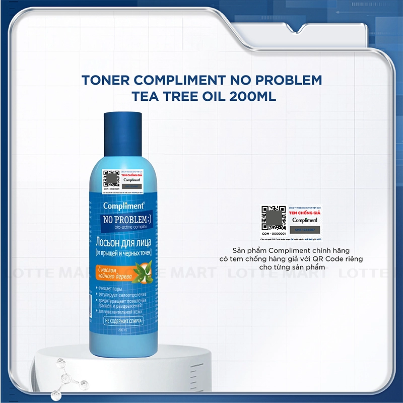 Toner Compliment No Problem Tinh Chất Tràm Trà Tea Tree Oil là sản phẩm thuộc thương hiệu Compliment của Tập đoàn TIMEX - một trong những doanh nghiệp sản xuất mỹ phẩm lớn và nổi tiếng nhất nước Nga được thành lập từ năm 1994.