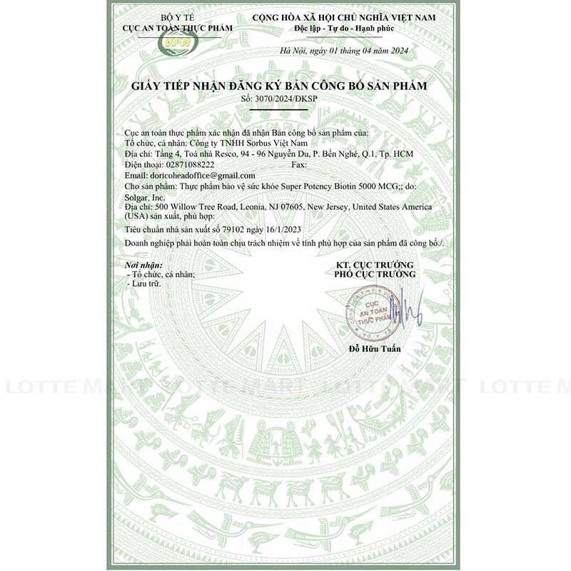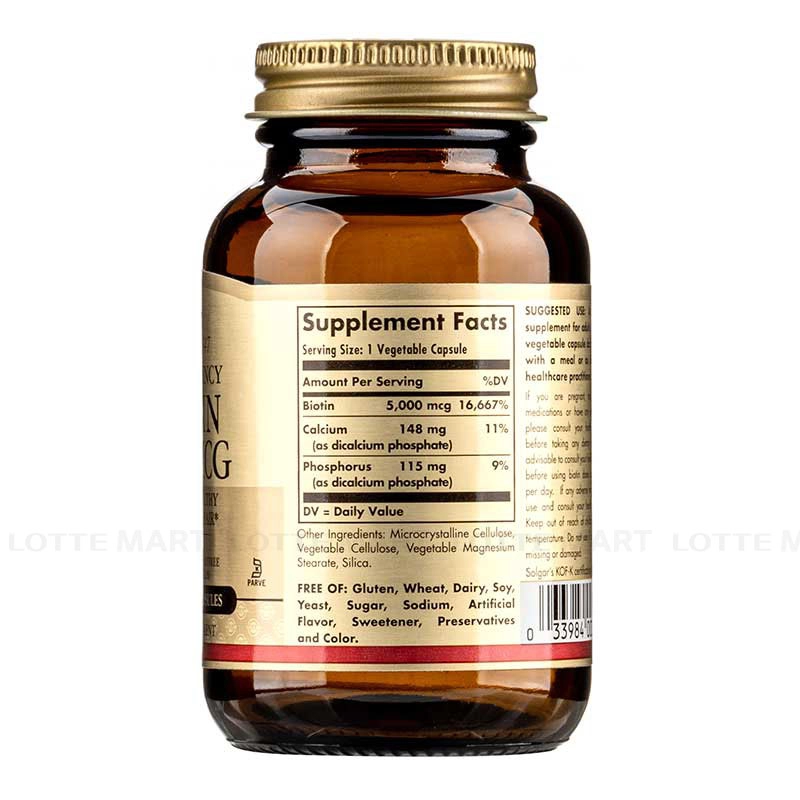 - Viên Uống Bảo Vệ Sức Khỏe Solgar Super Potency Biotin 5000mcg Lọ 50 Viên là sản phẩm đến từ Hoa kỳ thuộc thương hiệu vitamin cao cấp Solgar phù hợp với người ăn chay.