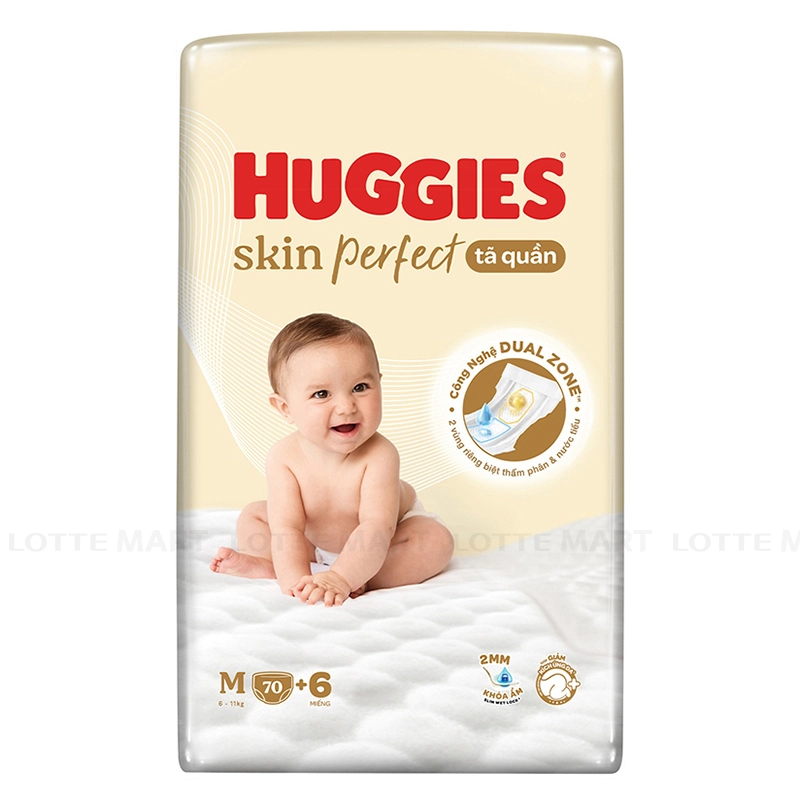 - Tã Quần Huggies Skin Perfect M70 Size M 70 Miếng (Dành Cho Trẻ Từ 6 - 11kg) với công nghệ Dual Zone - 2 vùng thấm riêng biệt dành cho nước tiểu và phân lỏng để hạn chế chúng trộn lẫn với nhau, giảm sự sinh sôi vi khuẩn gây hại, bảo vệ làn da non nớt của bé yêu.