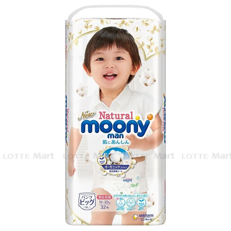 Tã Quần Moony Cao Cấp Natural Nhật Bản Size XL 32 Miếng (12-22kg)